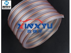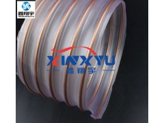 半透明PU管壁, 带镀铜色包塑钢丝螺旋加强 |